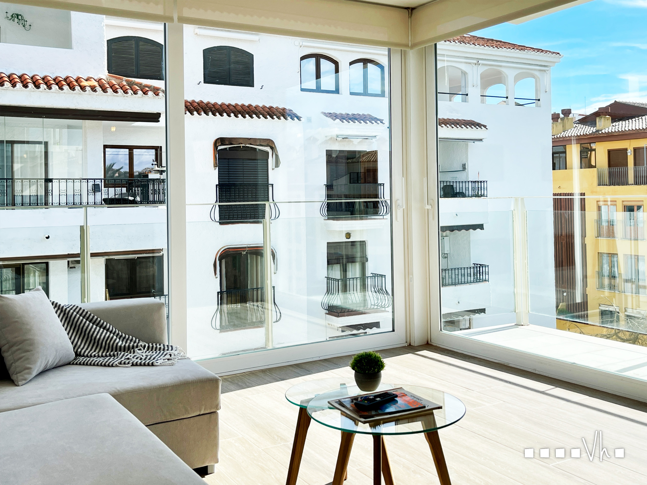 La sala de estar es el punto central de este apartamento ya que tiene unas impresionantes vistas al mar y al puerto.