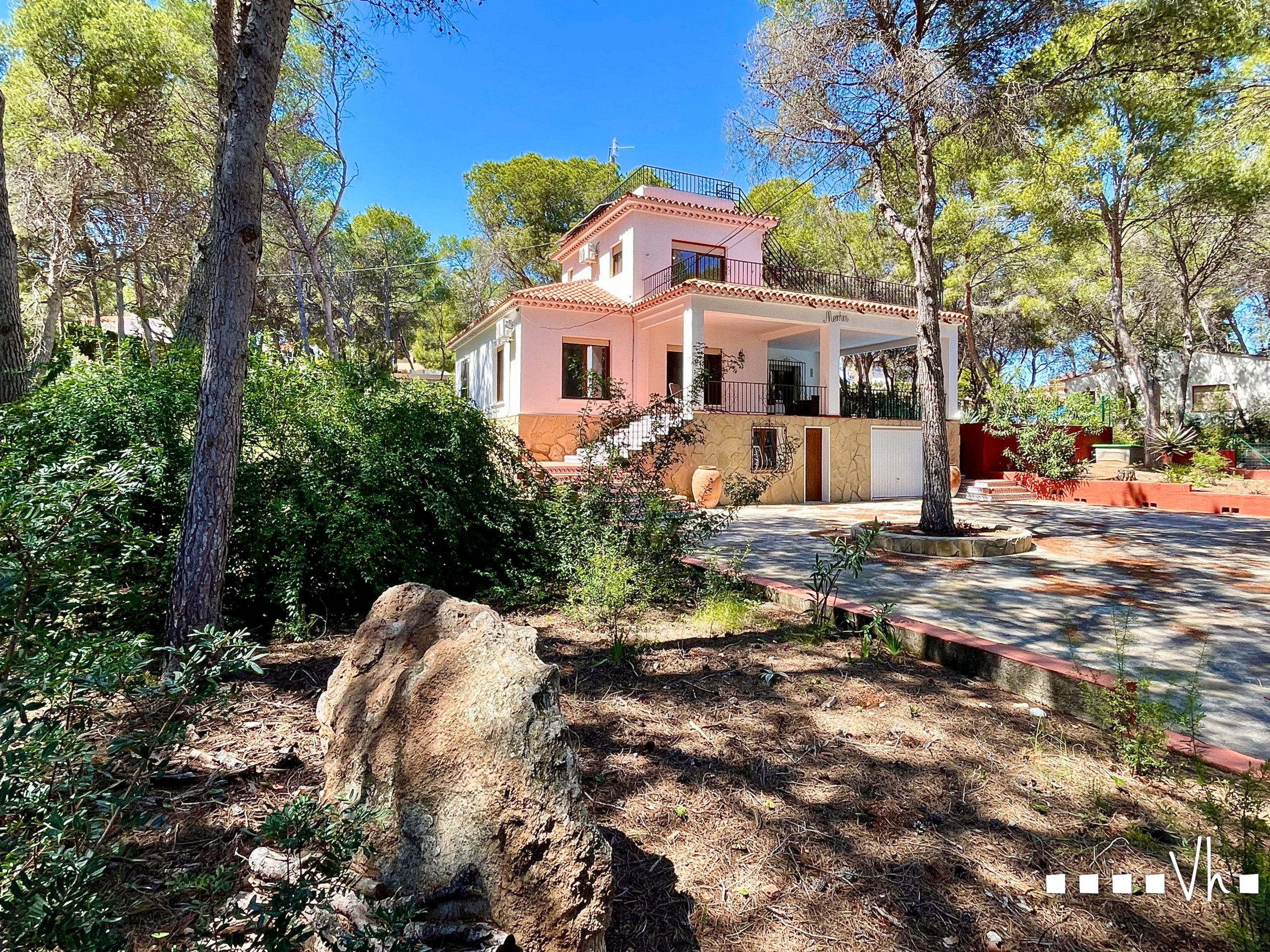 Een van de grote aantrekkingspunten van deze villa is de ruime buitenruimte. Het pand beschikt over een privé en omheind perceel van 4.029 m², met tuin, buitenmeubilair, terras en balkon met uitzicht.